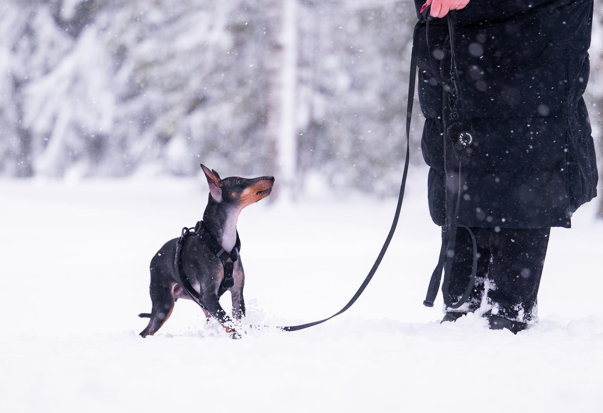 Kakkapussipidike on suloinen (ja käytännöllinen) lisä Soft-sarjaan. Pidike on valmistettu samasta kestävästä ja pehmeästä vakosametista kuin valjaamme ja kaulapantamme. Kotelon voi kiinnittää esimerkiksi hihnan O-renkaaseen tai omaan takkiin. Etupuolella on kätevä aukko, josta pussit saa helposti vedettyä ulos.